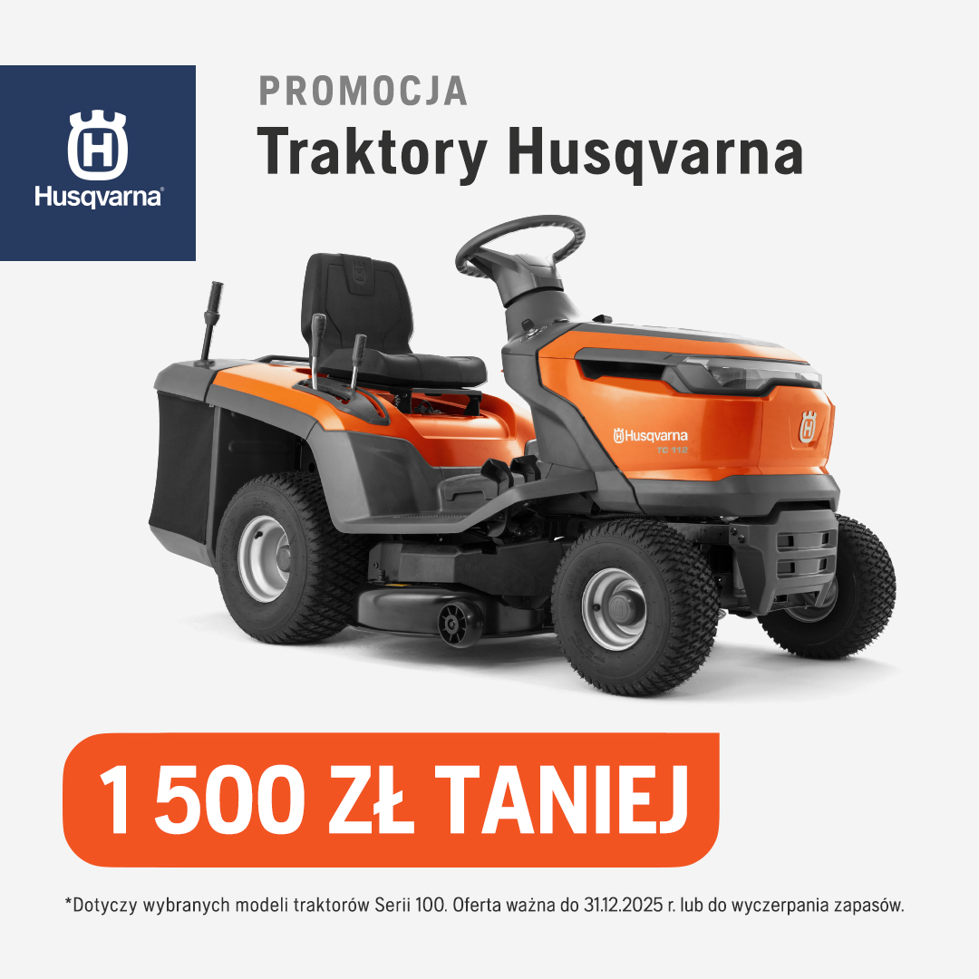 Wybrane traktorki ogrodowe Husqvarna teraz do 1 500 zł taniej. Oferta ważna do 31.12.2025 roku lub wyczerpania zapasów.