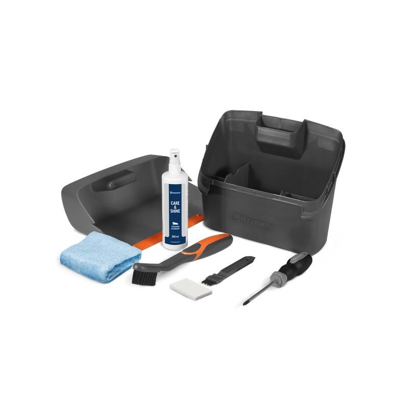 Zestaw ten ułatwia czyszczenie i konserwację kosiarki Husqvarna Automower®. Niezależnie od tego, czy chodzi o usuwanie trawy i brudu, wymianę ostrzy tnących, czy czyszczenie łączników. Zawiera dwa specjalne pędzle – jeden bardzo cienki i jeden mały pędzelek ze skrobaczką. Zawiera także śrubokręt, poduszkę ścierną, ściereczkę i butelkę aerozolu do pielęgnacji i nabłyszczania Automower® Care and Shine. Zestaw do czyszczenia i konserwacji stanowi część naszej szerokiej gamy wysokiej jakości akcesoriów Automower®.